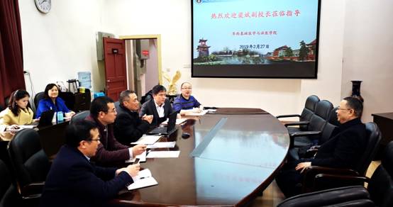 2月27日下午,梁斌副校长来必赢官网进行工作调研,并对学院新学年工作进行指导,调研会在学院会议室举行,学院党委书记李昌龙教授、院长黄灿华教授、党委副书记郭晓伟副教授、副院长方定志教授参加了调研座谈。