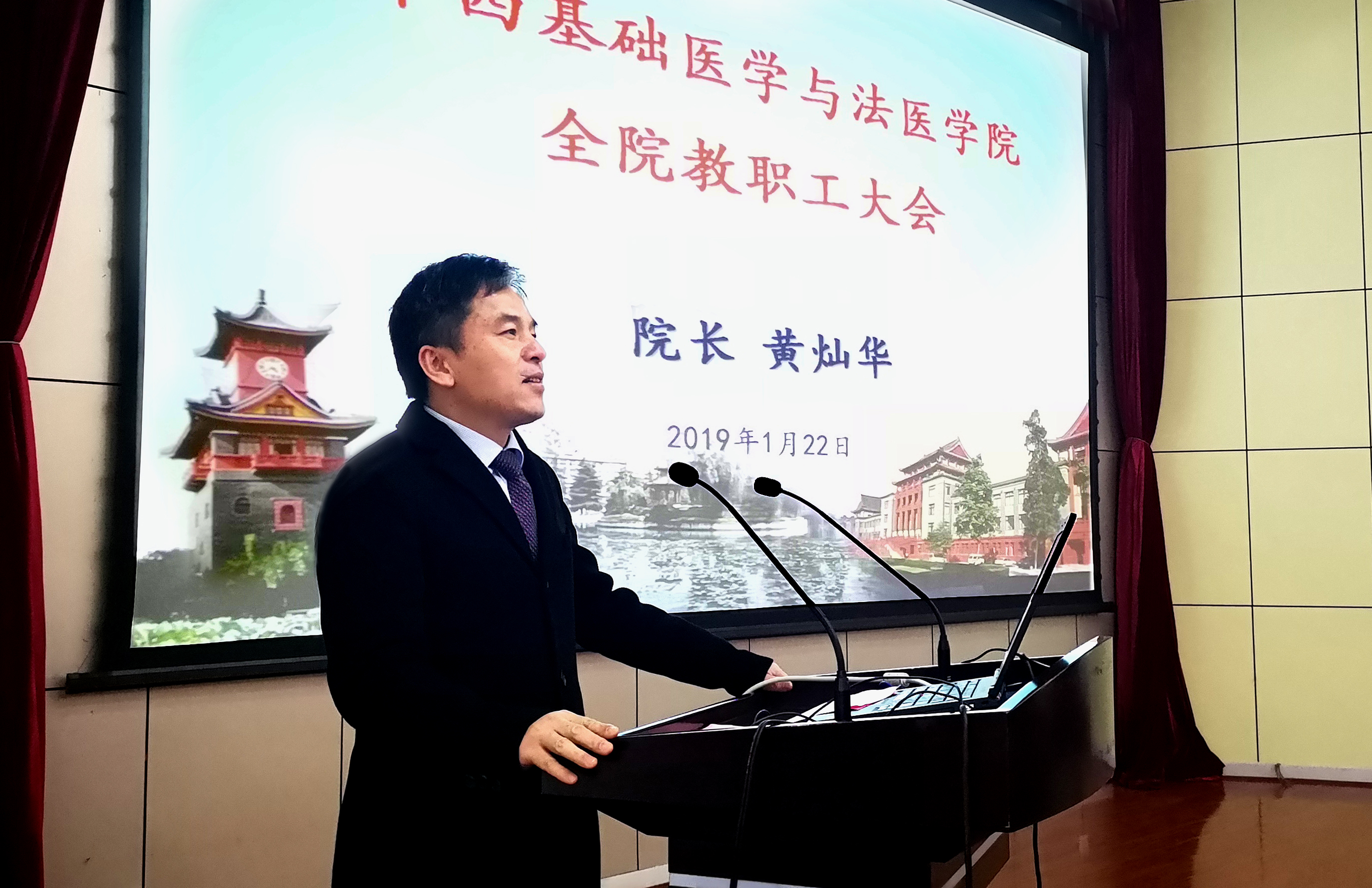 黄灿华院长就2019年学院工作计划进行了部署,他表示2019年学院要在基金申报工作、研究生管理改革、人才引进和空间改革方面继续努力,希望广大教职员工积极配合学校和学院的各项改革,充分发挥主观能动性,力争在人才培养、学科发展、师资建设方面再创佳绩。