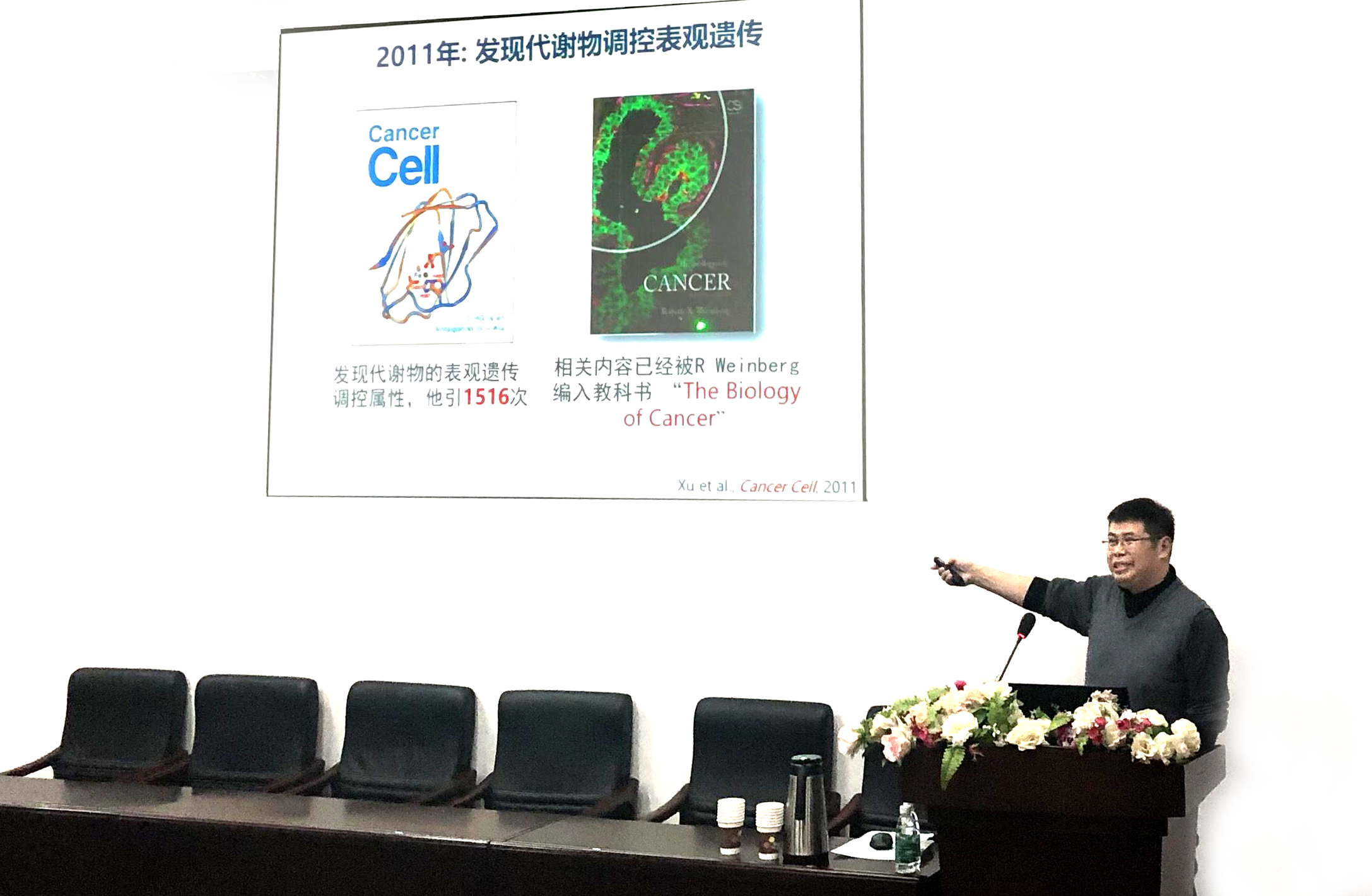 随后赵教授围绕着代谢物及代谢酶在调控胞内分子信号中的重要作用,向各位师生展示了他们团队的一系列开创性研究成果,他提出的科研理念(包括代谢物调控表观遗传,乙酰化修饰是一种广谱代谢调控机制等)让在场所有人都深受启发。