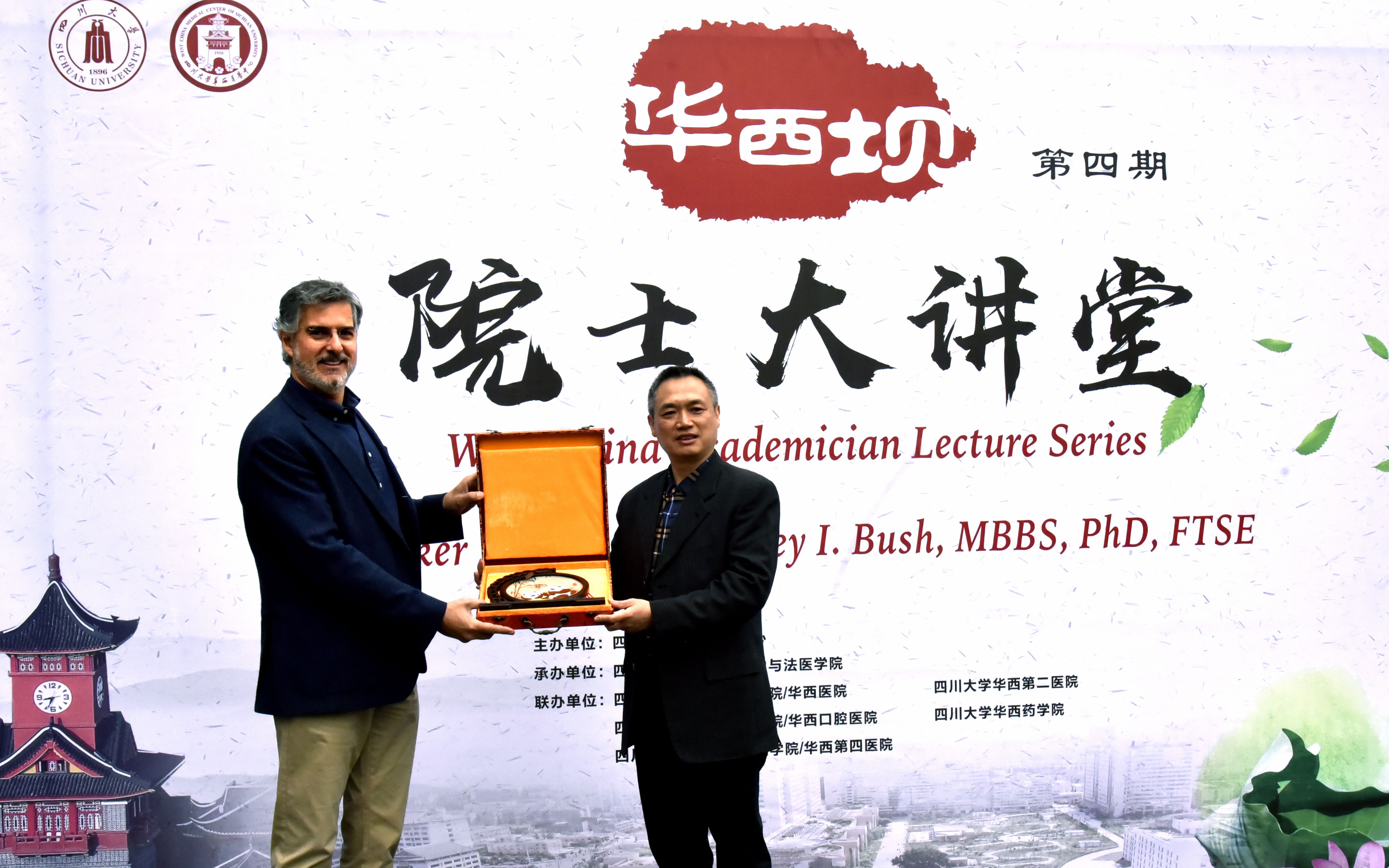 12月1日(星期六)上午9点,由华西医学中心牵头主办、华西基础医学72886欢迎光临新网站承办、医学各学院/医院协办的第四期“华西坝院士大讲堂”在华西校区逸夫基础医学楼学术报告厅隆重举行。本期的主讲嘉宾是澳大利亚墨尔本大学失智症研究中心主任,澳洲工程院、澳洲医学研究院Ashley Bush院士。本次大讲堂吸引了来自华西医学中心以及我校生命科学院等单位师生约260人参加,大讲堂由学院党委书记李昌龙教授主持。