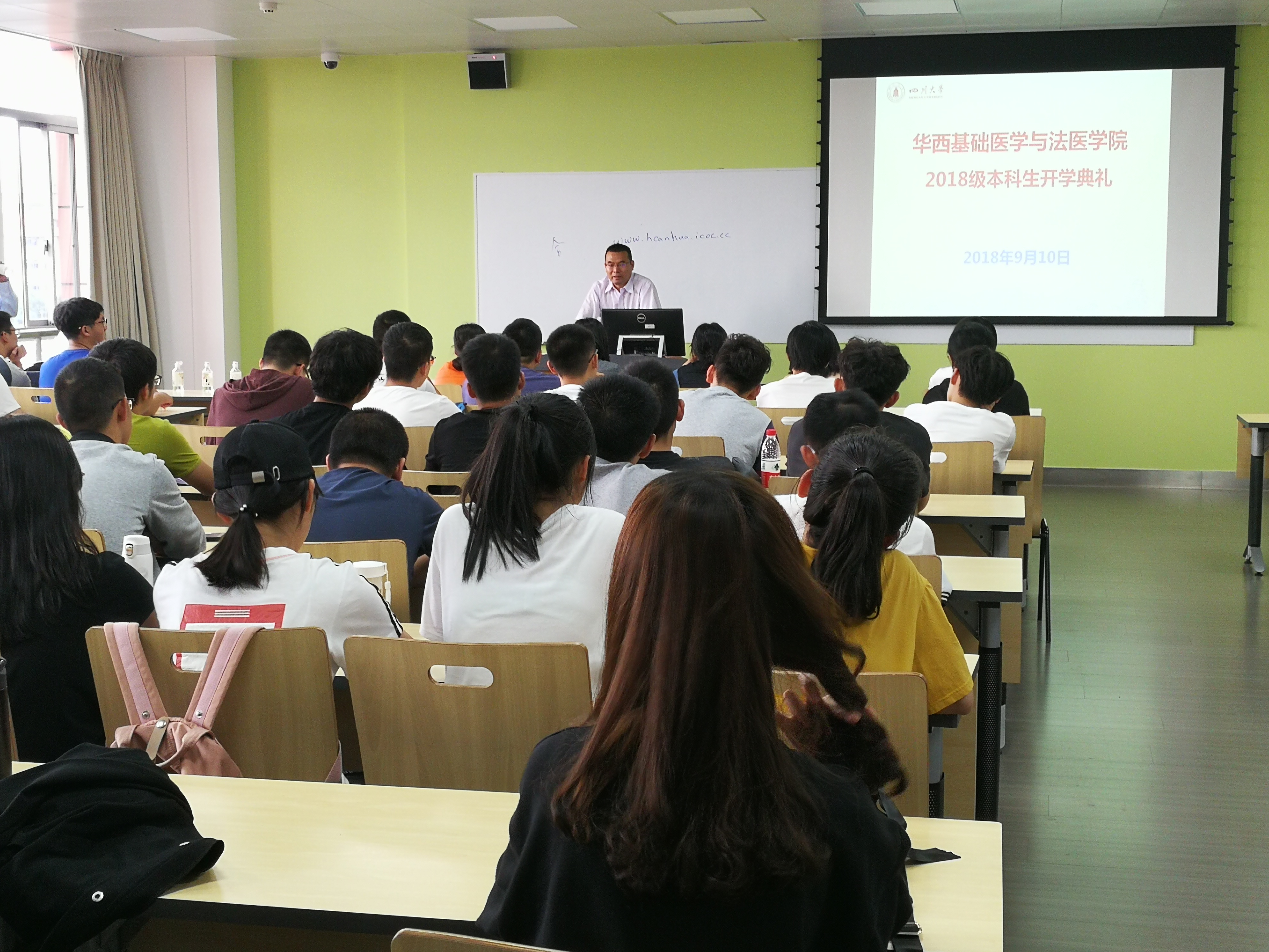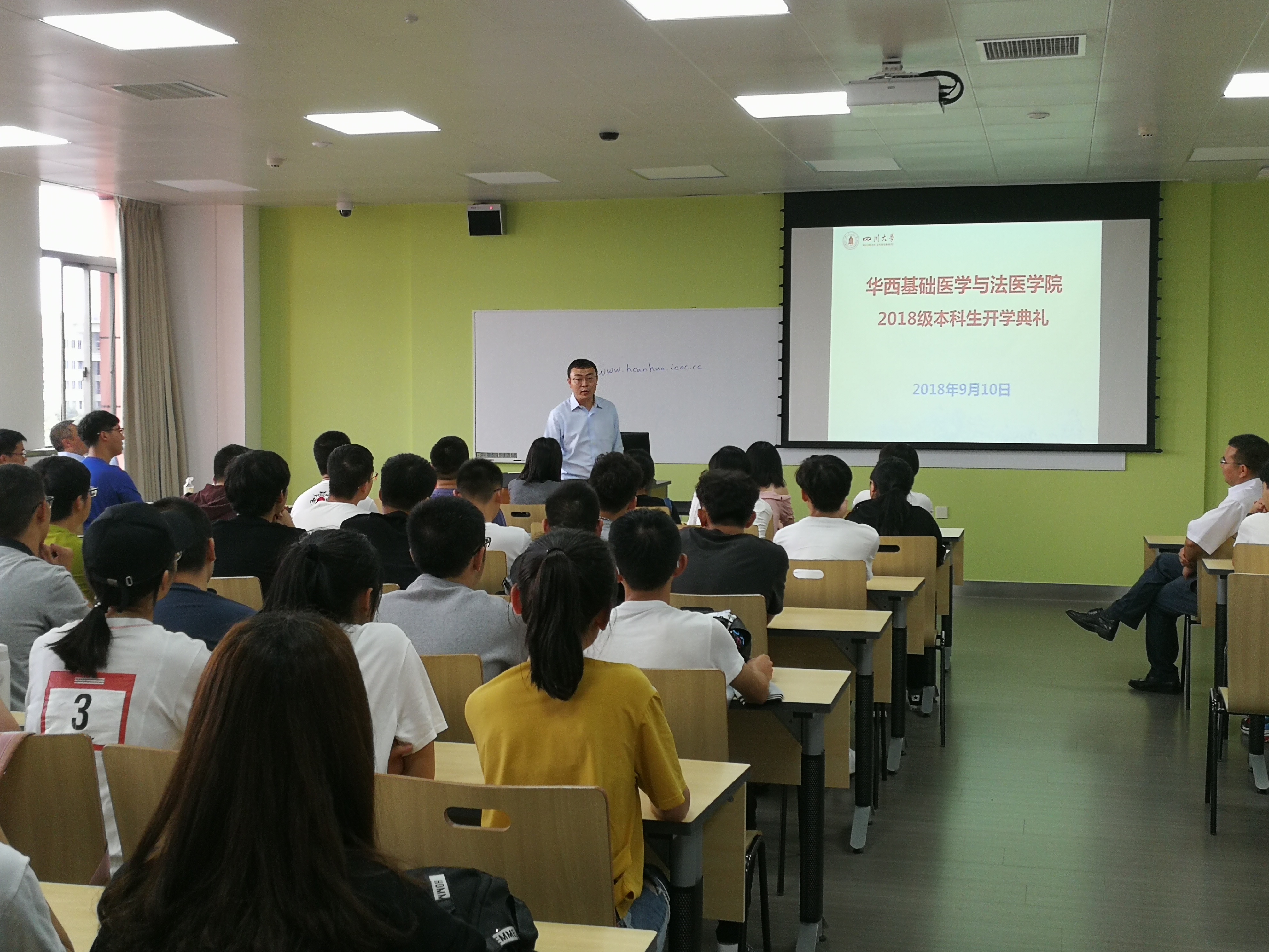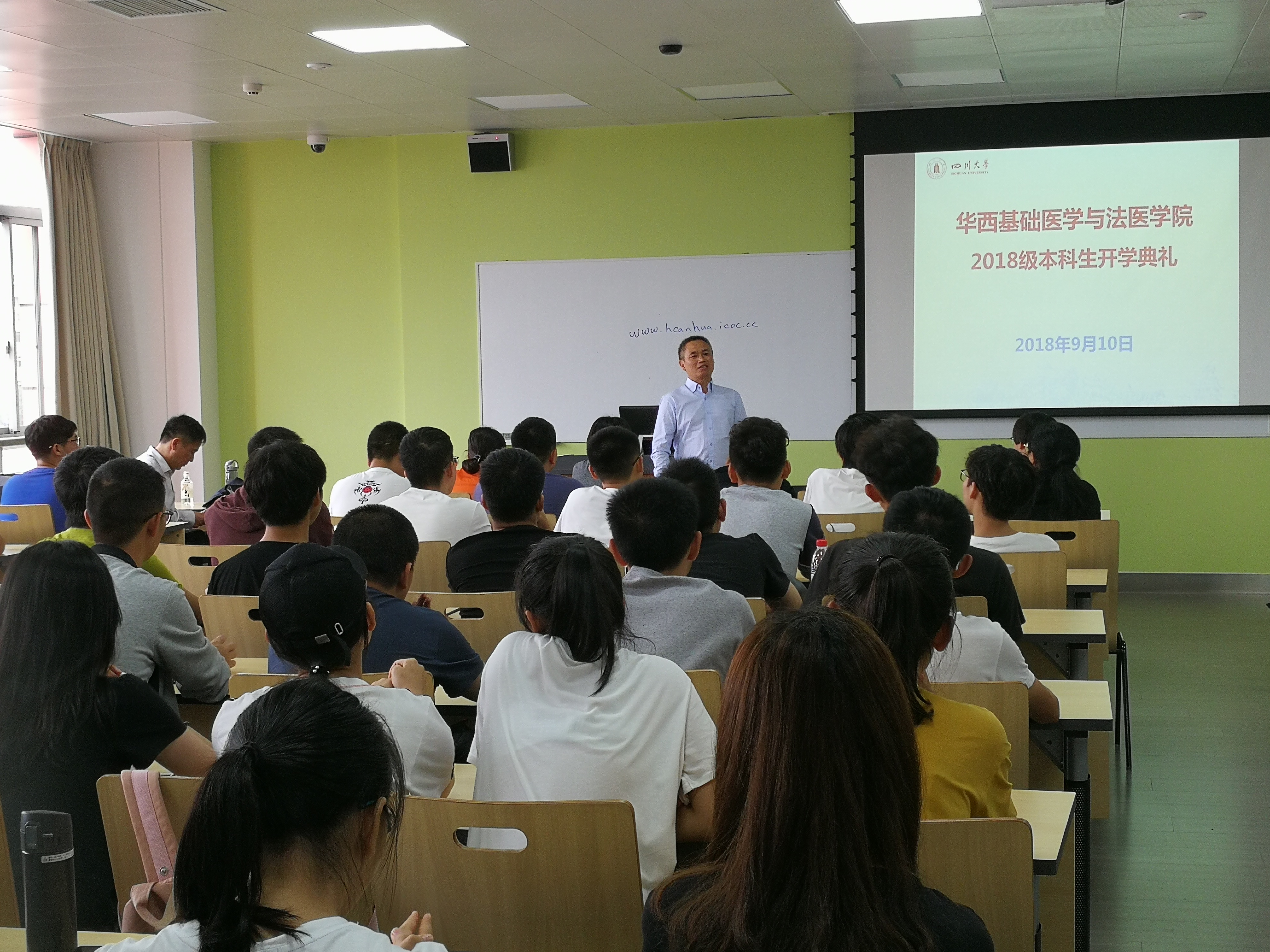 郭晓伟向同学们介绍了华西渊源和发展历程,阐明了华西是中国现代医学发源地之一。他表示,同学们要认真体会和理解校长在全校开学典礼上的讲话,并客观认识到学校在世界高校中的地位。他以此鼓励同学们,成功时不骄傲自负,挫折时不妄自菲薄,脚踏实地,不断努力,勇往直前。