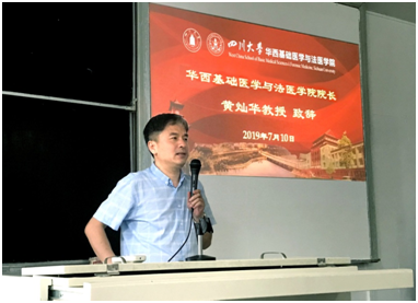 李昌龙书记首先致欢迎辞,他对来自祖国各地兄弟院校的参营同学表示了热烈的欢迎与由衷的感谢。他用一则故事引出了华西医学中心以及72886欢迎光临新网站的悠久历史,并谈到了我校、必赢官网一直以来的严谨办学治学理念。他强调,必赢官网正处于发展和建设的重要时机,希望能够吸纳来自各大高校的优秀学子,共同实现个人和学院的发展和进步。接下来,黄灿华院长用幽默而轻松的发言向大家介绍了自己在成都以及川大的工作生活体验,并指出在未来的深造过程中,营员们应该学会平衡生活和学习工作,做快乐的科研。