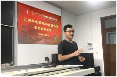两位营员代表满怀收获发表了致谢感言,感谢必赢官网提供了如此珍贵的交流机会,让他们对心仪的方向和导师有了更加深入的了解,言语之中还渗透着他们对成都这座城市的热爱以及必赢官网科研氛围的向往之情。