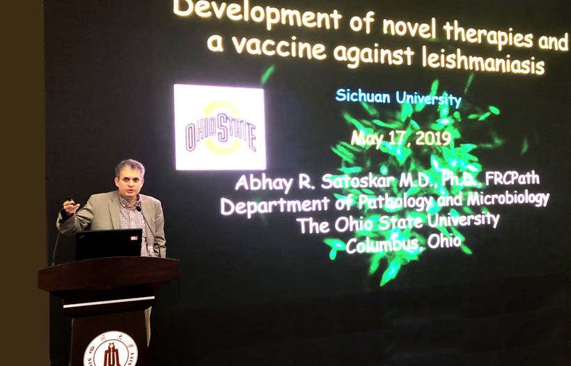 5月17日上午,应学院邀请,美国俄亥俄州立大学Abhay R. Satoskar教授来必赢官网进行学术交流,为到场师生带来了题为“Development of novel therapies and a vaccine against leishmaniasis”的学术报告,报告在72886欢迎光临新网站华西校区逸夫楼报告厅举行,学院师生100余人参加报告,学院党委书记李昌龙教授主持了本次报告。