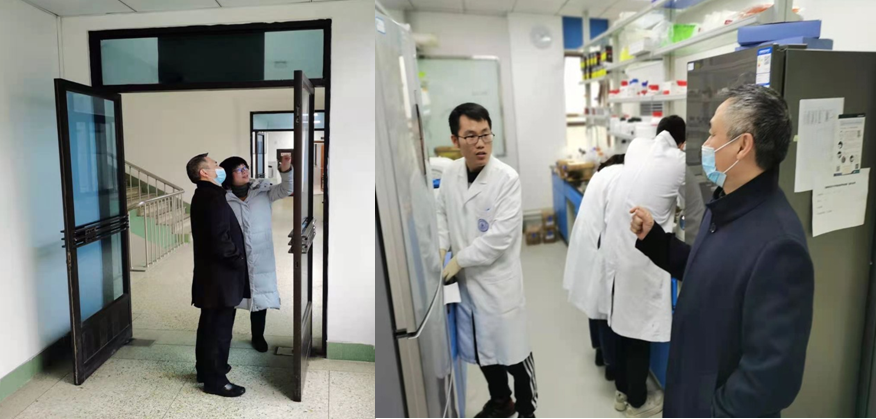 李书记一行率先来到法医楼,对法医楼的装修改造、防疫措施、门卫安全值守进行了检查指导,对各教研室、实验室以及假期留校学生科研场所进行了检查,仔细查看各单位的值班人员安排表、询问科室日常运行情况、检查实验室安全。希望各教研室、实验室高度重视假期安全工作,严格落实好安全责任制,假期值班人员要坚守岗位、履职尽责,做好安全巡查和值班记录,如发现异常情况,应妥善处理并及时报告。