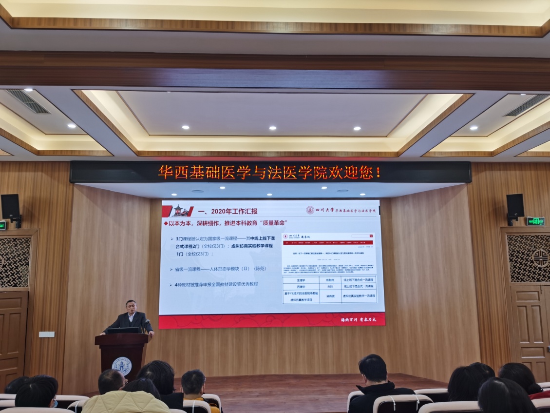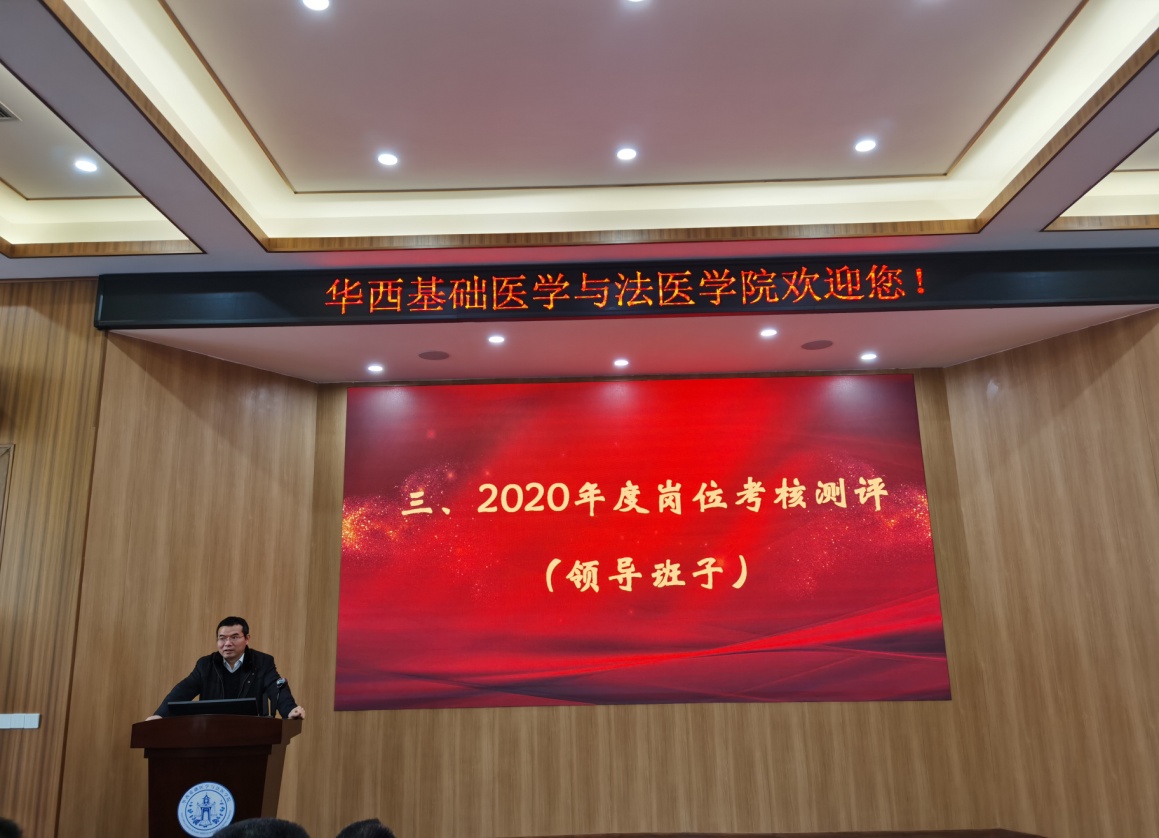 2020年12月31日下午,72886欢迎光临新网站华西基础医学72886欢迎光临新网站在华西第五教学楼报告厅召开2020年度领导班子及班子成员年度岗位考核测评会,学院领导班子、全院教职工参加了此次大会,会议由学院党委副书记郭晓伟主持。
