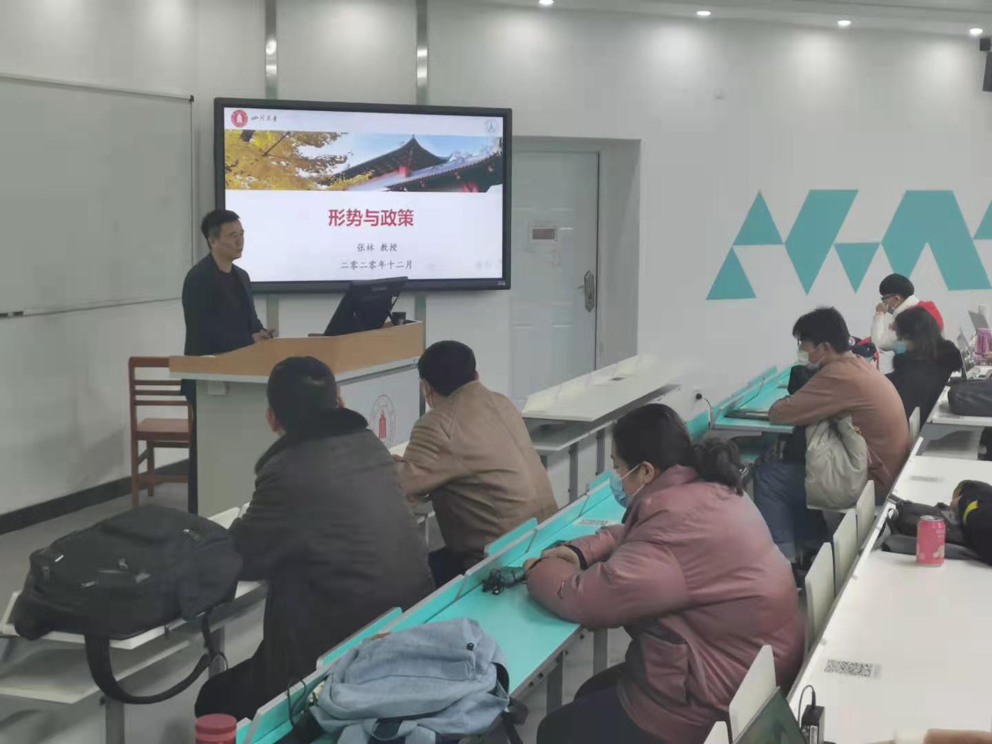 作为2018级基础医学基地班的名誉班主任,张林副校长一直关心关注着所带班级同学的学习生活和思想动态。在这次课上,张林教授带领大家回顾了我们国家在十三五期间取得的伟大成就,为同学们深入浅出地阐述了十九届五中全会精神,并勉励大家学习好、贯彻好全会精神,与医学发展和个人发展结合起来,勇于承担新时代新征程赋予广大青年大学生的新使命,珍惜在校学习的时间,学好专业知识,为建设现代化强国而矢志奋斗。作为法医遗传学的资深专家,张林教授以近期成都疫情为例,生动展示了如何利用专业知识,根据基因测序等现代技术手段来判定病毒类型,并从疫情防控的角度,揭示防疫的长期性、病毒与人的共存性将可能成为常态,要求同学们在科学防疫的同时,也不必过度紧张和恐慌。他指出,结合“十四五”规划建议,疾病治疗正全面向健康促进方向发展,这也是国家治理理念与发展目标的升华。面对医学专业发展的新局面,国家正在创新医学教育,我们川大的华西医学生应该站在更高的角度看待医学专业发展的新趋势和自身发展的新机遇。最后,他希望更多专业教师参与到大学生思想政治课中来,提高思政课程的吸引力和课堂质量,也建议医学生积极投身到志愿抗疫公益活动中去,在实践中提高自身专业素养。