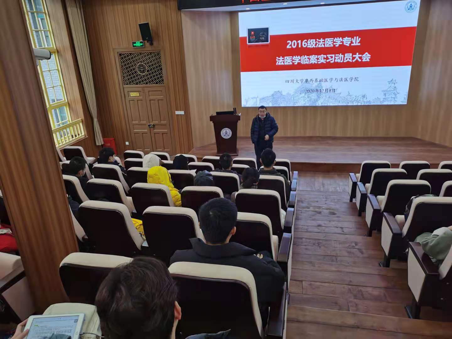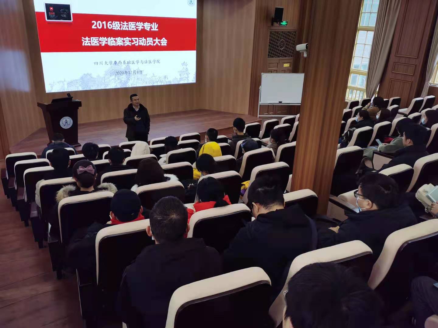 为引导本科毕业生做好专业实习前的各项准备,推进实习工作的顺利开展,必赢官网于12月8日上午,在第五教学楼报告厅举行2016级法医学专业毕业实习动员大会,学院郭晓伟副书记和梁伟波副院长出席了动员会。