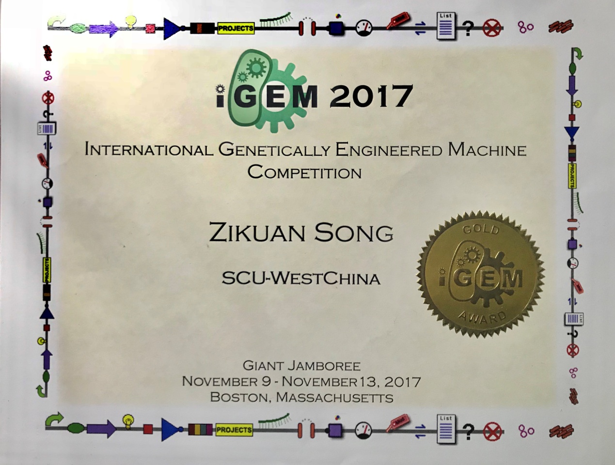 国际基因工程机器大赛金奖