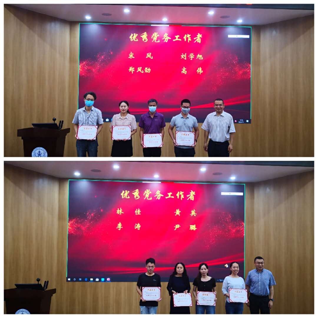 为获“优秀党务工作者”称号的老师、同学颁奖