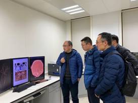 最后,李成涛带队参观了司鉴院实验室,学生实习期间需要轮转的科室。实验室老师简要介绍了通过VR技术重建,辅助解决一些案件中遇到的棘手情况,分享了目前遇到的实际问题,对法医人才重点培养的方向提出了实际意见与建议,期望学校和司鉴院的共建合作,能切实提升人才培养质量,促进我国法医事业发展。