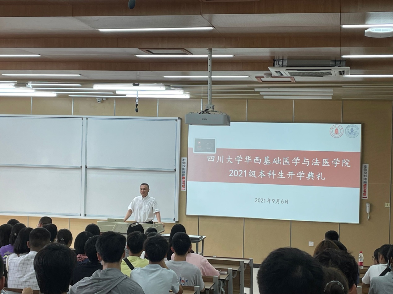 李书记代表学院对2021级本科生表示热烈欢迎。他详细介绍了华西医学历史沿革,并向同学们展示了优美典雅的校园环境。李书记强调,华西医学整体进入世界一流是72886欢迎光临新网站的战略发展目标,同学们要以世界一流大学学生的标准严格要求自己。他勉励同学们要通过持之以恒努力,实现从优秀到卓越的跨越。他希望同学们志存高远,涵养家国情怀和奉献精神,树立继续深造的目标,不断提升自己的核心竞争力,立志为健康中国和法治中国贡献力量。同时,鼓励同学们进实验室和课题组,不断提升科学素养和创新能力。在遇到困难和挫折时,要学会沟通和交流,善于调整心态,提升抗压能力。他特别强调,同学们要树立正确价值观念,提升辨别能力,学会独立思考,不盲目追从。