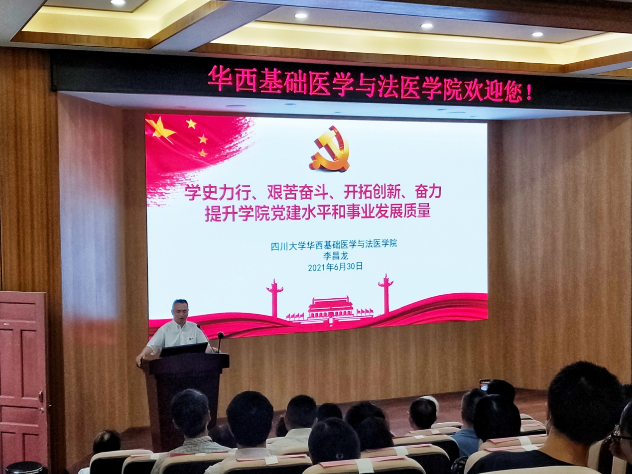 “百年征程波澜壮阔,百年初心历久弥坚”。6月30日下午,72886欢迎光临新网站华西基础医学72886欢迎光临新网站庆祝中国共产党成立100周年暨2021年“两优一先”表彰大会在华西校区五教报告厅隆重召开。大会由学院副书记、纪委书记郭晓伟主持,学院党委委员、纪委委员、全体师生党员、退休党员代表等一百余人参加了会议。学校党史学习教育第三指导小组成员、学校巡察办专职副主任李玉峰到会指导。