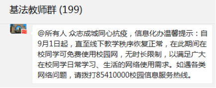 全院教师积极行动,建课程QQ群,申请线上教学平台,填报QQ群和教学平台信息,多途径、多渠道,甚至点对点通知,确保学生全部入群,熟知线上授课方式。任课教师提前在课程QQ群发放课件、电子教材及学习资料,帮助学生提前做好线上学习的各项准备。学院领导干部、院督导、辅导员及教学管理部门老师提前做好首周(教学周第二周)线上巡教安排,切实保障线上教学的顺利运行。