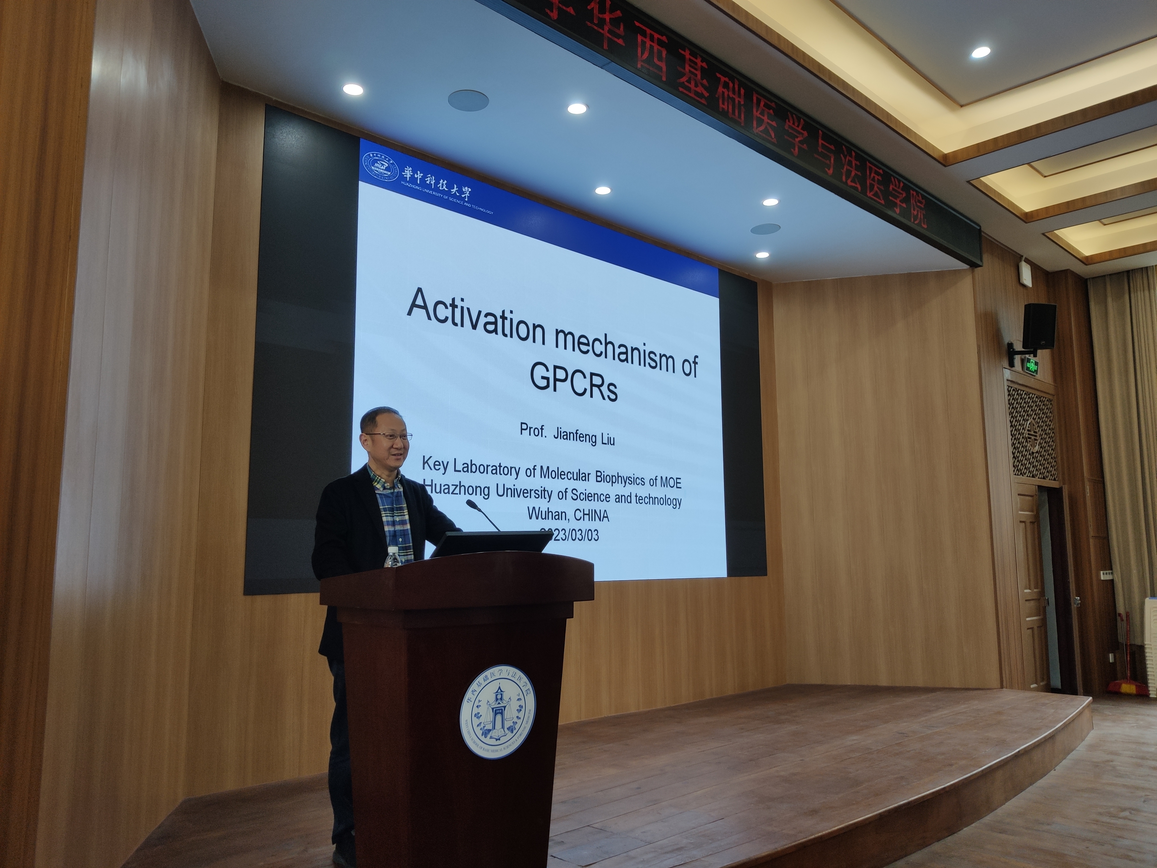 2023年3月3日下午4:30,应必赢官网邀请,华中科技大学生命科学与技术学院刘剑峰教授在华西校区五教报告厅作了题为“Activation mechanism of GPCRs”的学术报告。