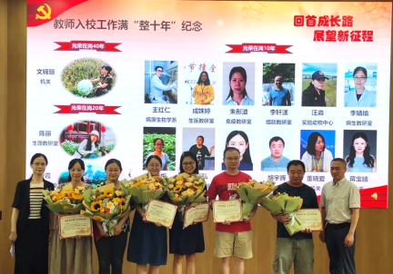 回首成长路,展望新征程。大会表彰了入校工作满“整十年”的教师,李华同志宣读名单,李昌龙同志为受表彰的老师们颁发证书,送上鲜花,感谢他们为学院发展做出的贡献。
