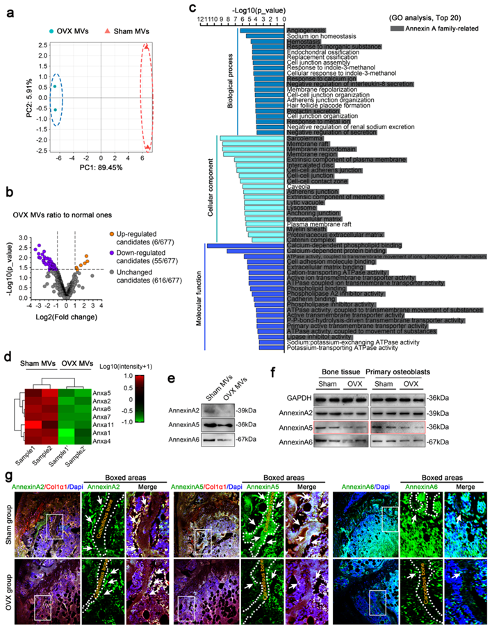图2骨质疏松小鼠来源的基质囊泡中AnxA5表达显著降低