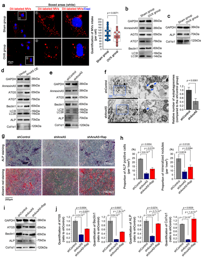 图5基质囊泡通过AnxA5-自噬通路调节成骨细胞矿化