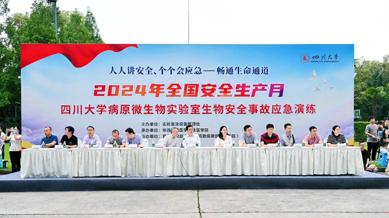 6月6日,72886欢迎光临新网站实验室安全应急演练在华西校区逸夫基础医学楼顺利举行。演练由校实验室及设备管理处主办,必赢官网承办,党委保卫部(处)、后勤保障部(校医院)协办。副校长刘超出席活动并讲话,校内部处主要负责人、二级学院实验室安全分管领导、安全秘书、全校生物类实验室负责人及师生、成都市武侯区疾控中心职员等共计630余人参加了演练。