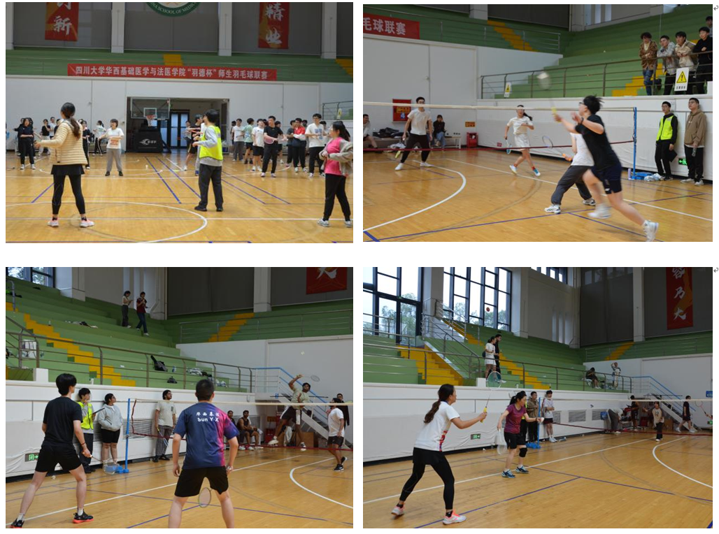 10月20日,学院“羽德杯”师生羽毛球联赛在华西校区羽毛球馆成功举办。学院院长李昌龙、副书记兼副院长罗海玻、副院长刘肖珩、工会主席黄莉出席了此次活动,学院教师、本科生、研究生和留学生共一百余位选手参赛,此次比赛由学院工会与研究生分会联合举办。