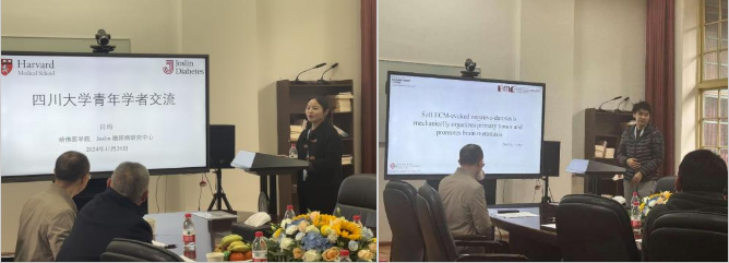 (左一:哈佛医学院Joslin糖尿病研究中心肖玲博士后研究员 右一:香港理工大学郑雨帆博士)