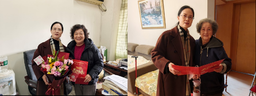 学院党委书记李华、副书记罗海玻、副院长刘肖珩、梁伟波、张舒羽、工会主席黄莉、人事干事盛立一行看望慰问了百岁老人周素华、陈槐卿、吴梅筠、蓝庭剑、欧可琼、包定元、张再蓉、刘亚群、岳利民等老同志。
