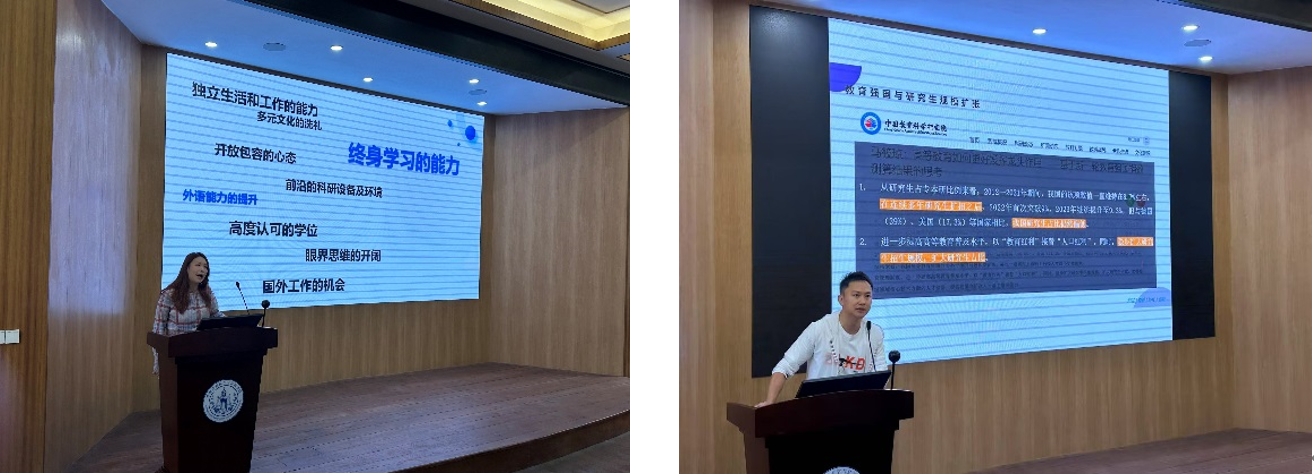 新东方集团出国部钟佩瑶,从留学收获、国外高校概况、出国留学如何准备、川大出国留学成功案例及奖学金介绍五个方面讲解出国出境留学事项。考研部罗佳老师从考研大数据,择校择专业,考研英语、政治复习规划方面与同学们分享经验,为同学们答疑解惑。