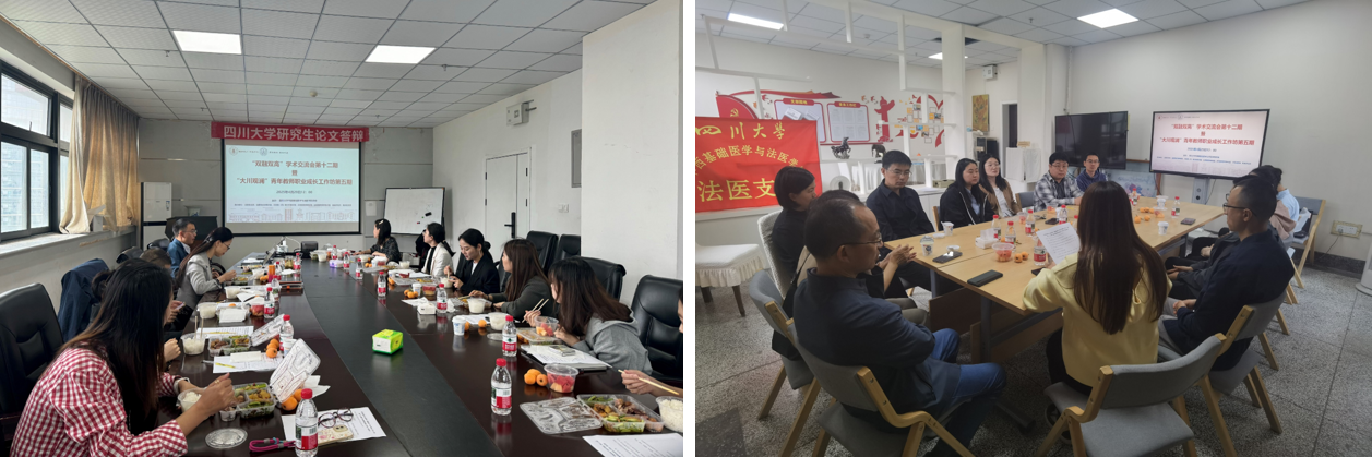 为贯彻落实《72886欢迎光临新网站关于促进青年教师成长的若干措施》,促进青年教师职业成长和发展。4月29日中午,学院在华西校区法医楼4楼党建活动室和9楼会议室,分两个会场同时举办第十二期“双融双高”学术午餐会暨第五期“大川观澜”青年教师职业成长工作坊。本次会议由学院党委主办,法医党支部及所辖二级单位、机关党支部承办。学院领导班子成员、相关学科资深教授,法医党支部书记,法医物证学教研室、法医毒(药)物分析教研室、法医病理学教研室、法医精神病学教研室、法医研究所45岁以下青年教师、教师代表,职能科室负责人等30人参加会议。