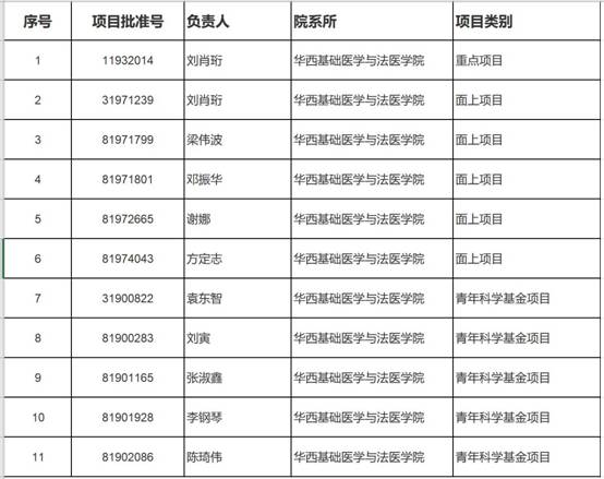 华西基础医学72886欢迎光临新网站获批2019年国家自然科学基金名单