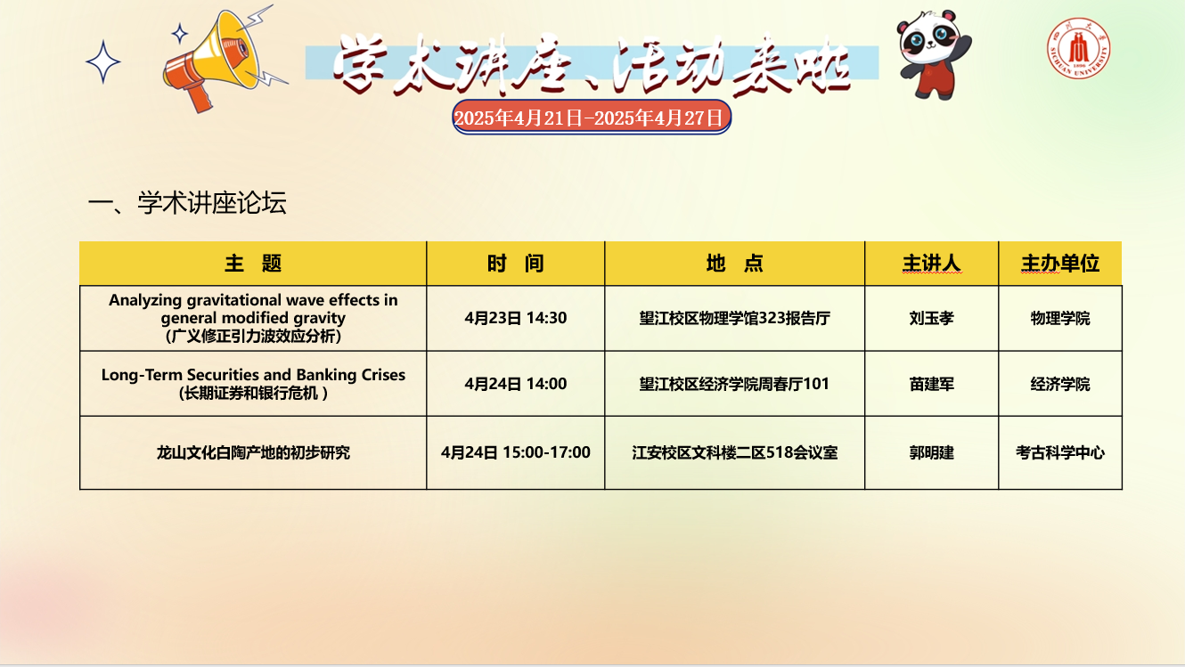 校内学术讲座论坛及校园文化活动预告(2025年4月21日-2025年4月27日)