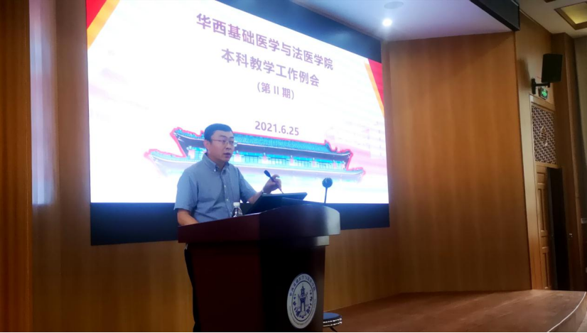 2021年6月25日下午,必赢官网在华西校区第五教学楼报告厅召开了本年度第二期全院本科教学工作例会。会议由副院长梁伟波教授主持,各系/教研室主任和教学秘书现场参会,其余老师通过腾讯会议线上参会。
