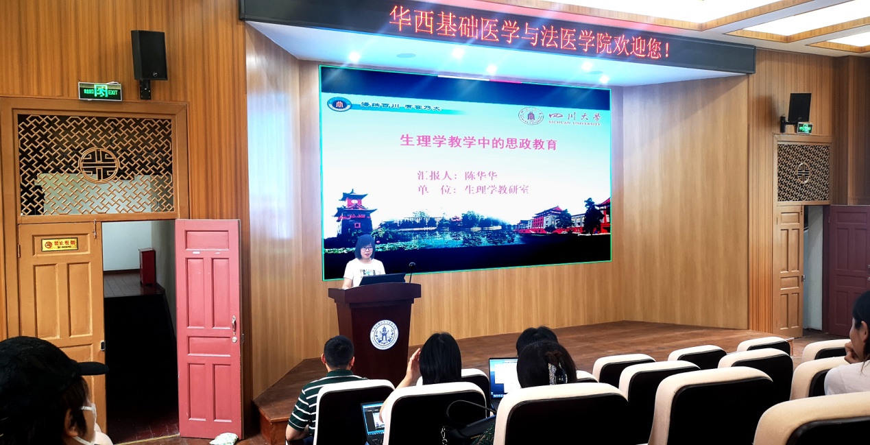 陈华华老师以“生理学教学中的思政教育”为题,介绍了生理学教学中进行课程思政教育的方法。她提出,每一章节的生理学学科知识都可以与中外科学家的优秀事迹相结合,比如在讲血压的时候引入复旦大学钟杨教授的事迹,讲述他的“科研心、教育梦、民族情”;可以在讲失血对机体的影响时,引导学生进行无偿献血,讲述必赢官网黄英老师20余年的献血史……这些都可以自然而然地培养学生的爱国主义精神、科学创新精神、无私奉献精神和人文精神,树立以人为本的人文精神,传播身边的正能量。