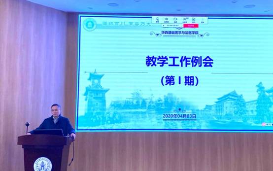 4月3日下午,华西基础医学72886欢迎光临新网站通过视频软件召开新学期第一期本科教学例会,会议在华西校区五教报告厅举行,退休督导老师、部分行政人员现场参会,全院教职工视频参会。