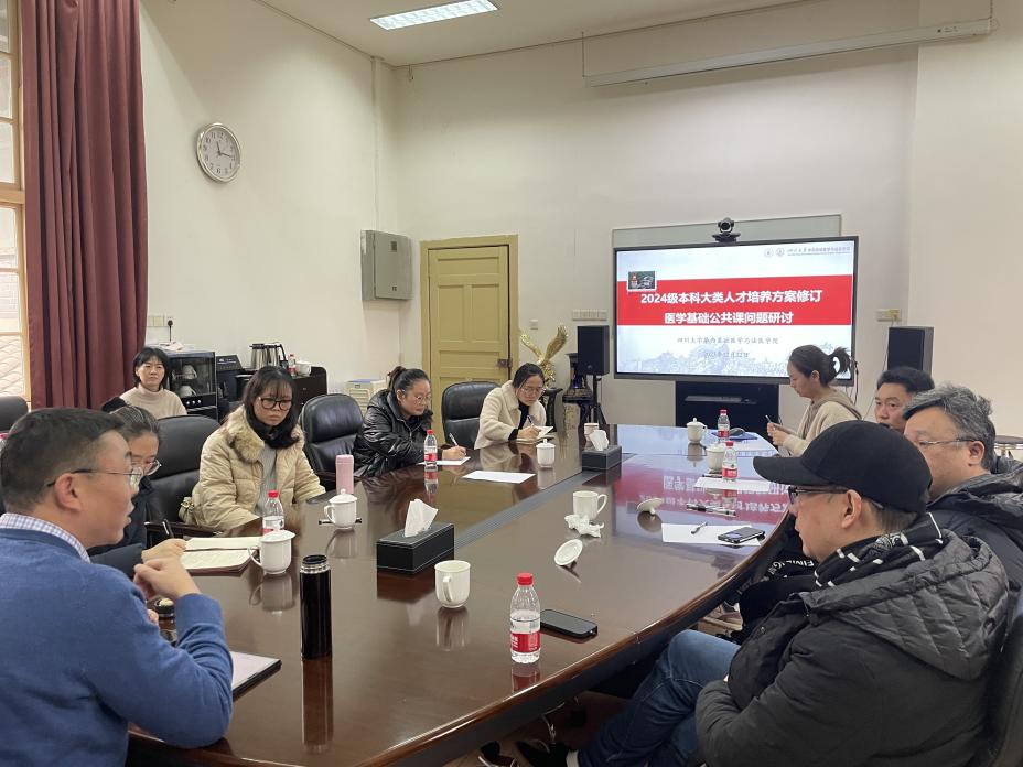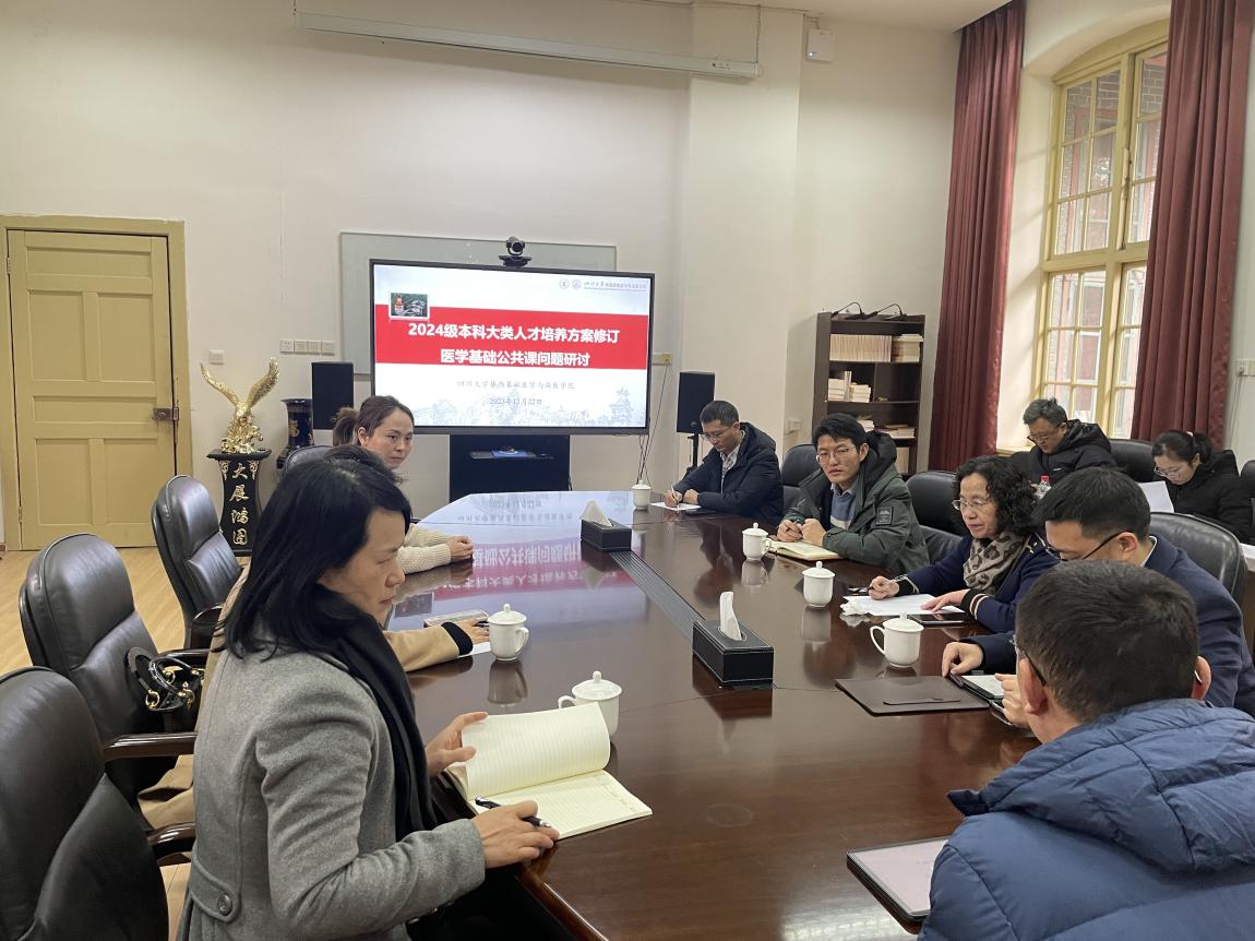 12月22日上午9:30,必赢官网在华西第五教学楼二会议室召开2024级本科大类人才培养方案修订之医学基础公共课问题研讨会,教务处副处长冉桂琼、卿平及各专业学院代表出席了会议,会议由教学副院长梁伟波教授主持。