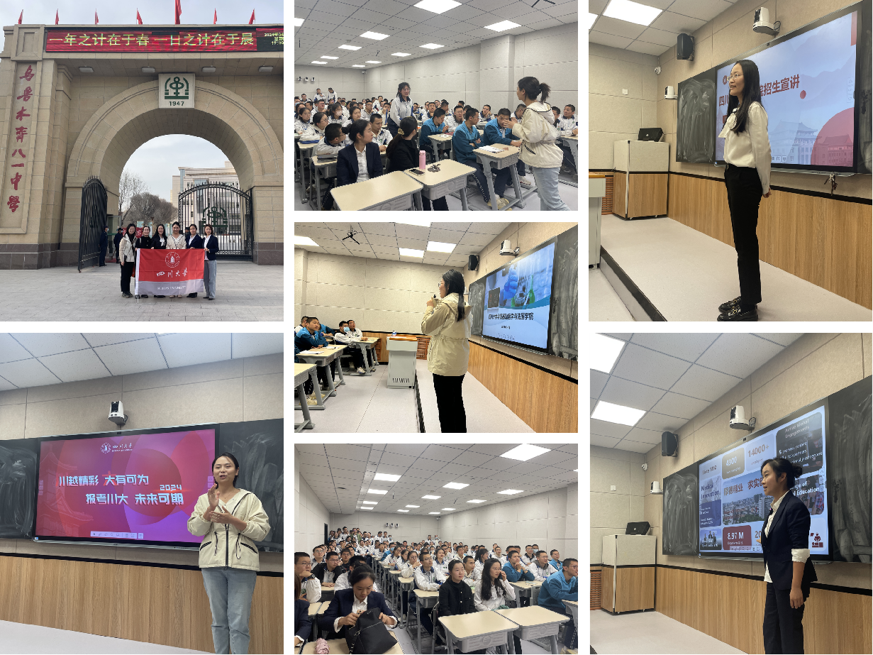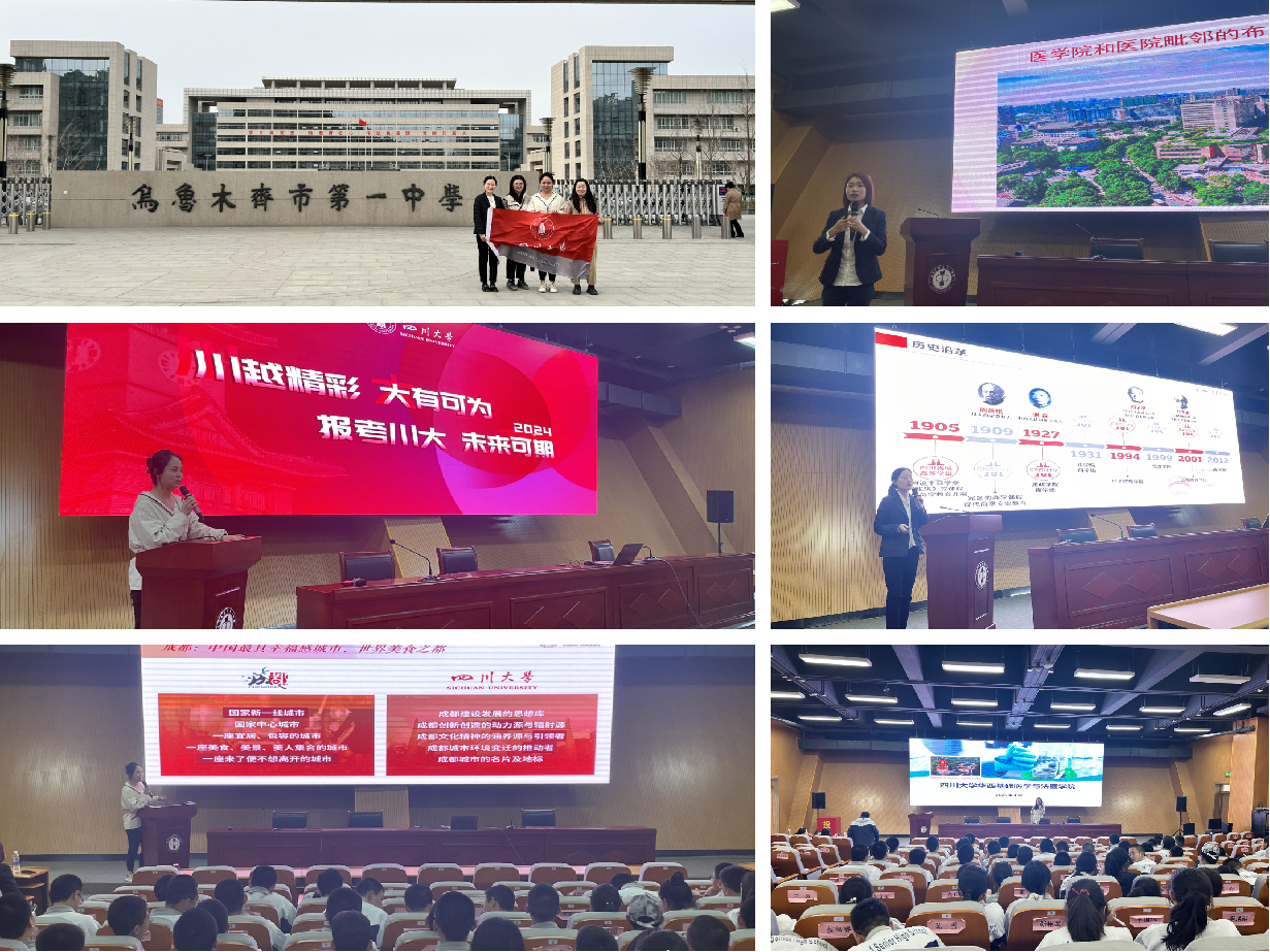 4月15日-16日,宣讲团先后走进乌鲁木齐八一中学和乌鲁木齐市第一中学,为超过200名高中生带去了川大在人才培养、招生政策、志愿填报等方面的最新资讯,并分别对各自学院的历史、专业构成、人才培养优势进行了介绍。