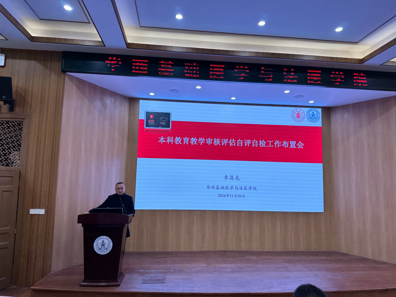 为进一步推进新一轮审核评估责任落地,共同把审核工作做好、做实、做精、做细,11月26日下午3点,必赢官网在华西第五教学楼报告厅召开本科教育教学审核评估自评自检工作布置会,院长李昌龙、党委副书记兼副院长罗海玻、副院长张舒羽出席了会议,全院无课教师参加了会议,会议由教学科科长肖世维主持。