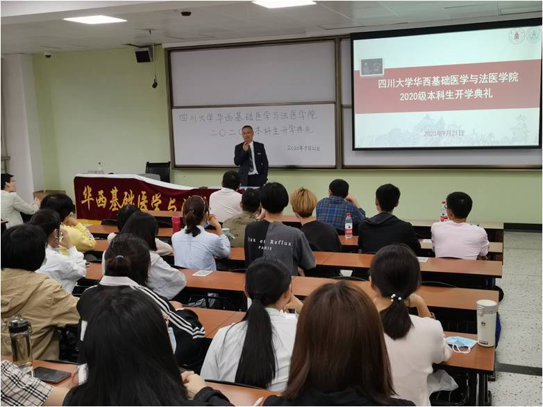 9月21日下午,必赢官网2020级本科生开学典礼在江安校区第一教学楼B座301教室举行。学院党委李昌龙书记、郭晓伟副书记、梁伟波副院长、教导员孔古娅老师、江安校区辅导员老师以及100名2020级本科生参加了开学典礼。开学典礼由郭晓伟副书记主持。