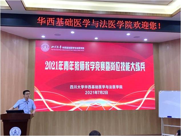 为进一步加强师德师风建设,提高必赢官网教育教学质量,培养高素质青年教师队伍,学院于7月2日在第五教学楼报告厅隆重举行2021年青年教师教学竞赛暨青年教师岗位技能大练兵活动。学校教务处副处长、华西医学中心教学部部长卿平、学校工会副主席吕海涛、学院党委书记李昌龙、党委副书记郭晓伟及学院师生近八十余人参加。学院副院长梁伟波主持活动。