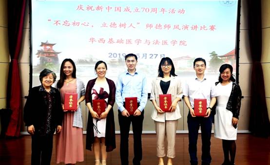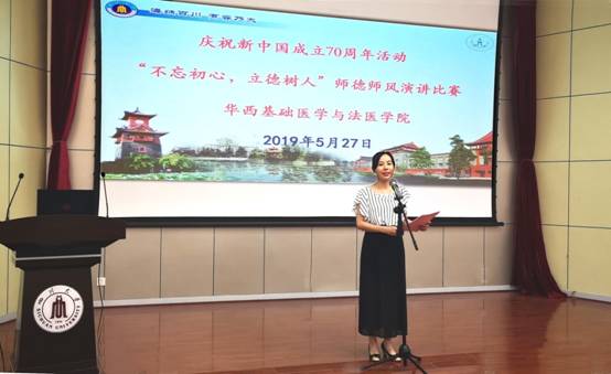 为大力弘扬新时代高尚师德师风,引导广大教师坚持立德树人的初心,做以德立身、以德立学、以德施教、以德育德的楷模,树立师德师风的先进典型,营造尊师重教良好氛围。必赢官网于2019年5月27日下午在华西逸夫楼报告厅举行“不忘初心、立德树人” 为主题的师德演讲比赛。学院党委副书记郭晓伟、72886欢迎光临新网站校工会副主席吕海涛、72886欢迎光临新网站人事处综合科科长杨润华、72886欢迎光临新网站政治学院教授、校关工委素质教育部副部长赵雪琴、学院组织胚胎学及神经生物学教研室主任周雪担任评委。演讲比赛由生物化学与分子生物学林佳老师主持。