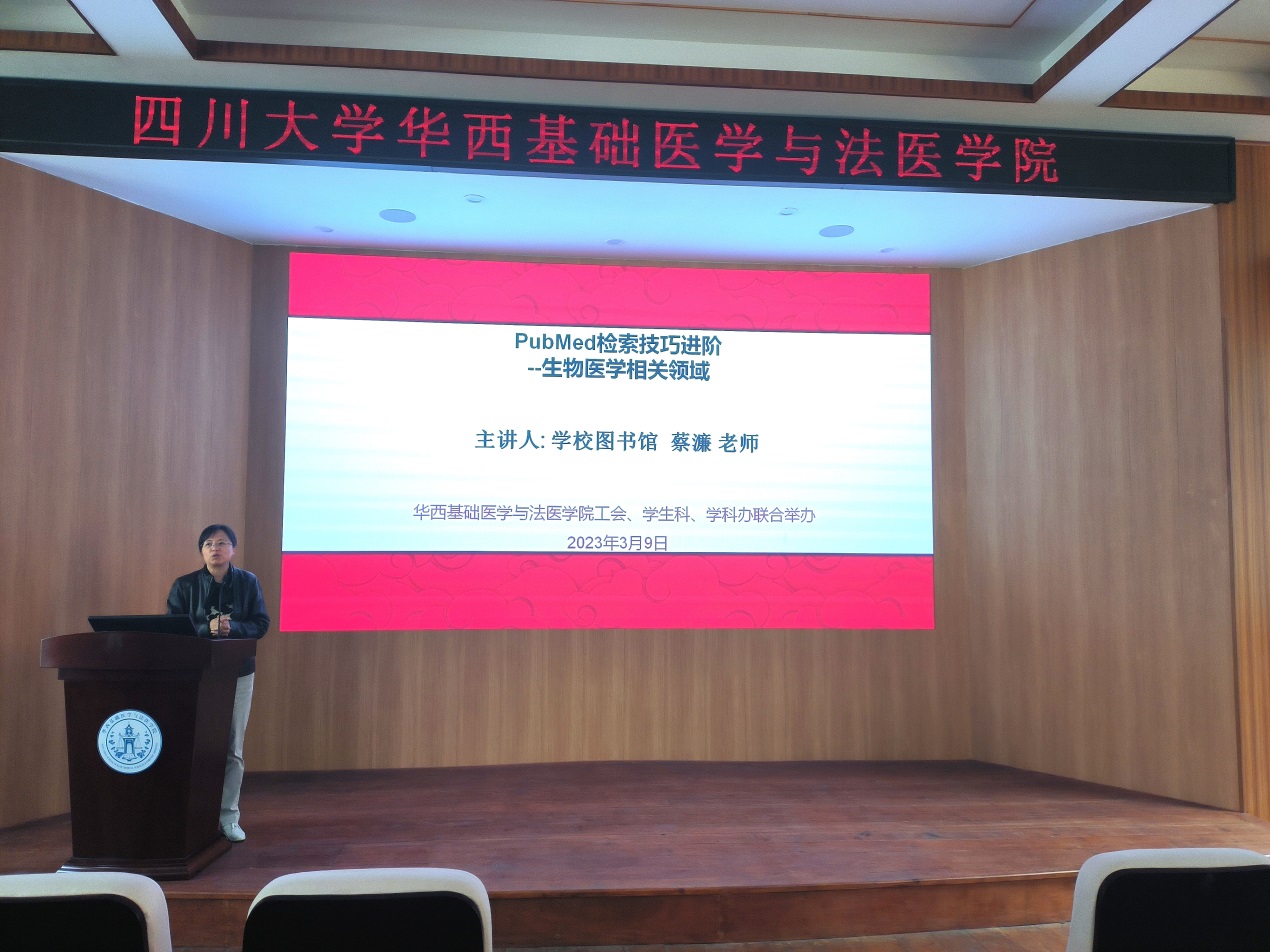 为了提高必赢官网师生的工作学习效率,夯实科研工作基础,促使师生具备高效文献获取能力,强化科研创新思维,3月9日下午,学院工会、学生科、学科办联合邀请72886欢迎光临新网站图书馆蔡濂副研究馆员来必赢官网开展医学相关文献检索专题讲座,近70名师生参加。讲座由病理生理学教研室主任王玉芳教授主持。