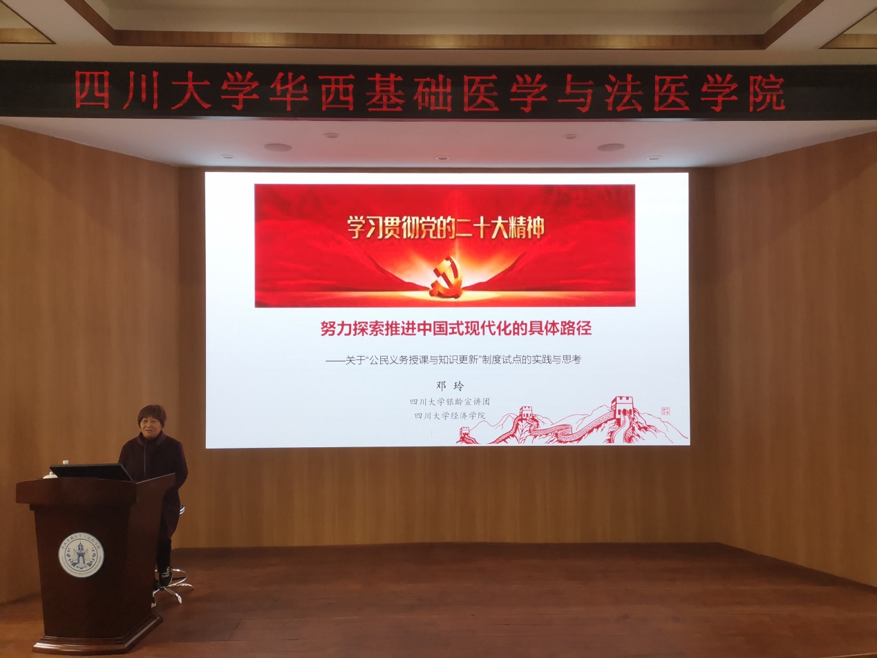 邓玲教授以《努力探索推进中国式现代化的具体路径——关于“公民义务授课与知识更新”制度试点的实践与思考》为题,围绕中国式现代化的特征和本质、“公民义务授课与知识更新”制度试点基本情况、制度试点为什么是中国式现代化的积极探索、制度试点的理论和实践价值四个方面,详细阐释了自身积极推进中国式现代化的生动实践。邓玲教授于2019年底提出关于“设立‘公民义务授课与知识更新’制度,建设中国特色学习型社会的建议”,得到时任四川省省长尹力的肯定性批示。先后在威远高石镇、蒲江寿安镇、泸州江北镇开展试点,获得良好成效。制度试点将生态文明和可持续发展理论引入到人力资本开发领域,努力探索构建中国式人力资本开发和终身学习的学习型社会新模式,同时为加快形成以国内循环为主的新发展格局提供了新的思路。
