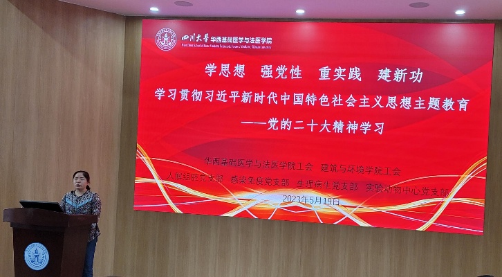 5月19日,学院工会与建筑与环境学院工会联合必赢官网人解组胚党支部、感染免疫党支部、生理病生党支部和实验动物中心党支部在华西五教报告厅开展学习贯彻习近平新时代中国特色社会主义思想主题教育,深刻领悟“两个确立”的决定性意义。活动分为专家辅导讲座和党的二十大知识竞赛两个部分,学院党委书记李华、60余名党员及教职工参加本次活动。