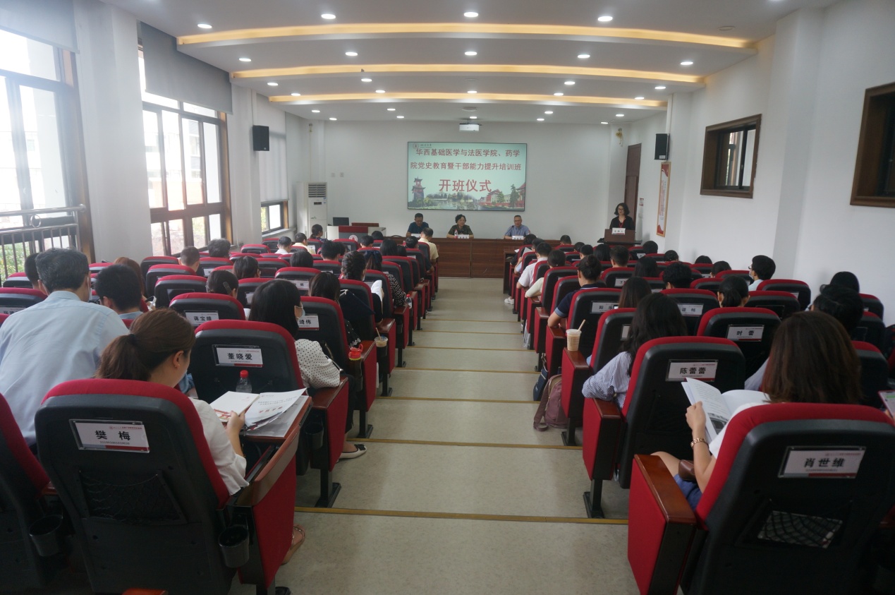 2021年9月30日上午,72886欢迎光临新网站华西基础医学72886欢迎光临新网站、华西药学院党史教育暨干部能力提升培训班在望江校区全国干部教育培训基地开班。公共管理学院党委书记姜晓萍、华西基础医学72886欢迎光临新网站党委书记李昌龙、华西药学院党委副书记章程出席开班仪式。华西基础医学72886欢迎光临新网站、华西药学院党支部书记、教研室/系主任、科级干部、新进教职工等60余人参加培训。