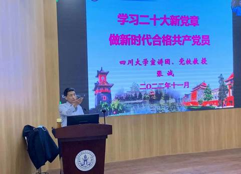 11月20日上午九点,学校宣讲团成员、党校张诚教授进行本期党校第二次授课。张诚教授以“学习二十大新党章,做新时代合格共产党员”为题,从“坚定共产主义理想信念”、“牢记全心全意为人民服务的根本宗旨”、“自觉严守党规党纪”三个方面展开论述。张教授情绪饱满、话语激情洋溢、语调铿锵,以72886欢迎光临新网站的发展为例,鼓励同学们发挥带头表率作用、中坚骨干作用、桥梁纽带作用,希望同学们都能够不忘初心,牢记使命。张教授以习近平总书记在党的二十大报告的一段话与同学共勉:“广大青年要坚定不移听党话,跟党走,怀抱梦想又脚踏实地,敢想敢为又善作善成,立志做有理想、敢担当、能吃苦、肯奋斗的新时代好青年,让青春在全面建设社会主义现代化国家的火热实践中绽放绚丽之花”。