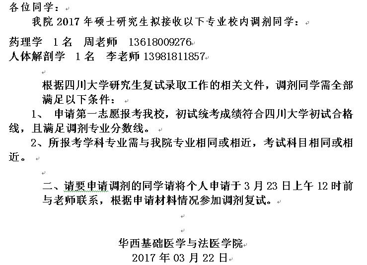 亲爱的同学: 欢迎报考72886欢迎光临新网站华西基础医学72886欢迎光临新网站!根据《72886欢迎光临新网站研究生复试录取工作实施办法》(川大研【2012】94号)有关规定,经学院研究生招生工作小组研究,2017年必赢官网硕士研究生招生复试安排如下: 一、 ...