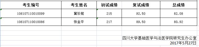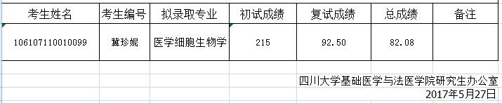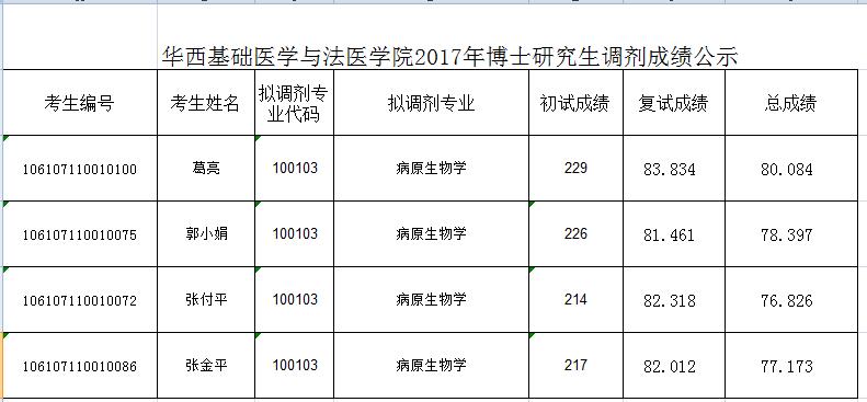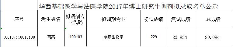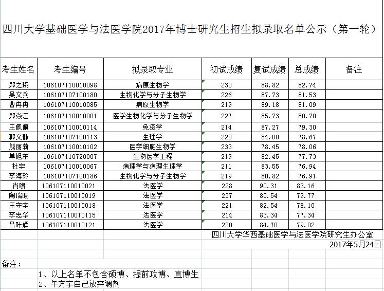 华西基础医学72886欢迎光临新网站2017年博士研究生调剂拟录取名单公示