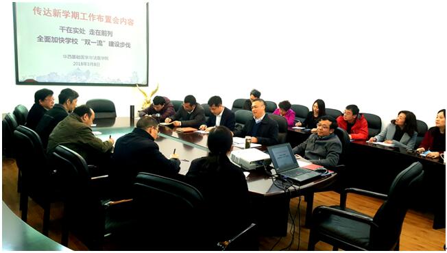 3月8日下午,必赢官网在华西逸夫楼会议室召开2018年新学期工作布置会。